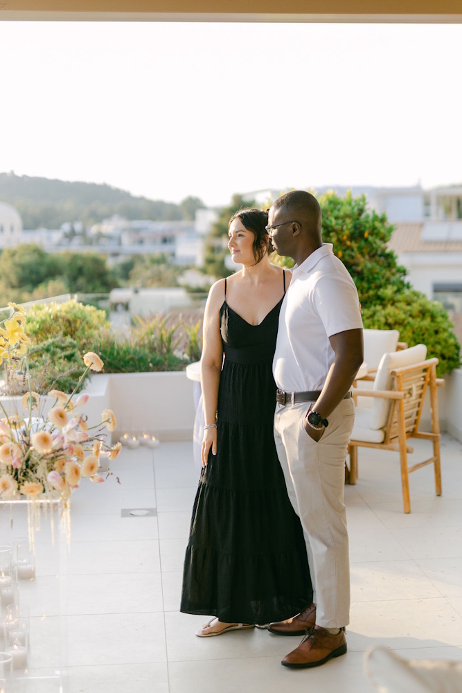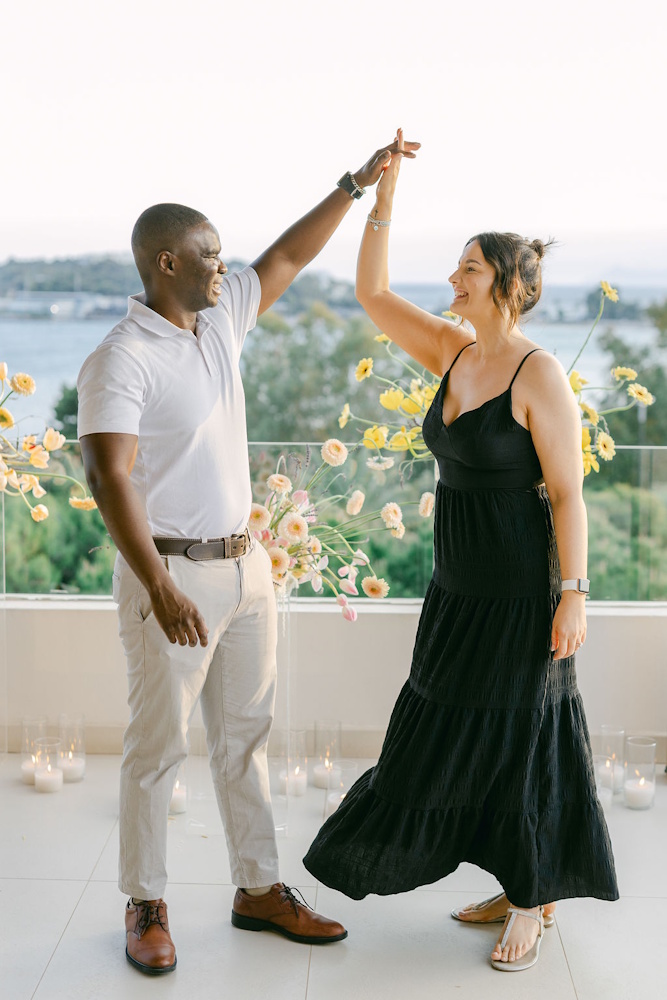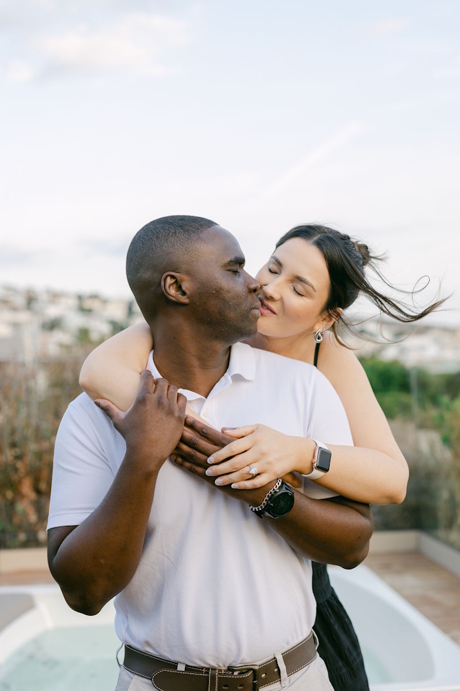 As the evening sun dipped below the horizon, the terrace glowed in hues of gold and rose. Emmanuel dropped to one knee, his voice steady yet filled with emotion and Amy said “yes.” Their private photoshoot followed, capturing the radiance of that “just-engaged” joy, the laughter between them, and the quiet tenderness that lingered long after sunset. Even as clouds brushed across the sky, the atmosphere remained magical, illuminated by love and the start of a new journey together.