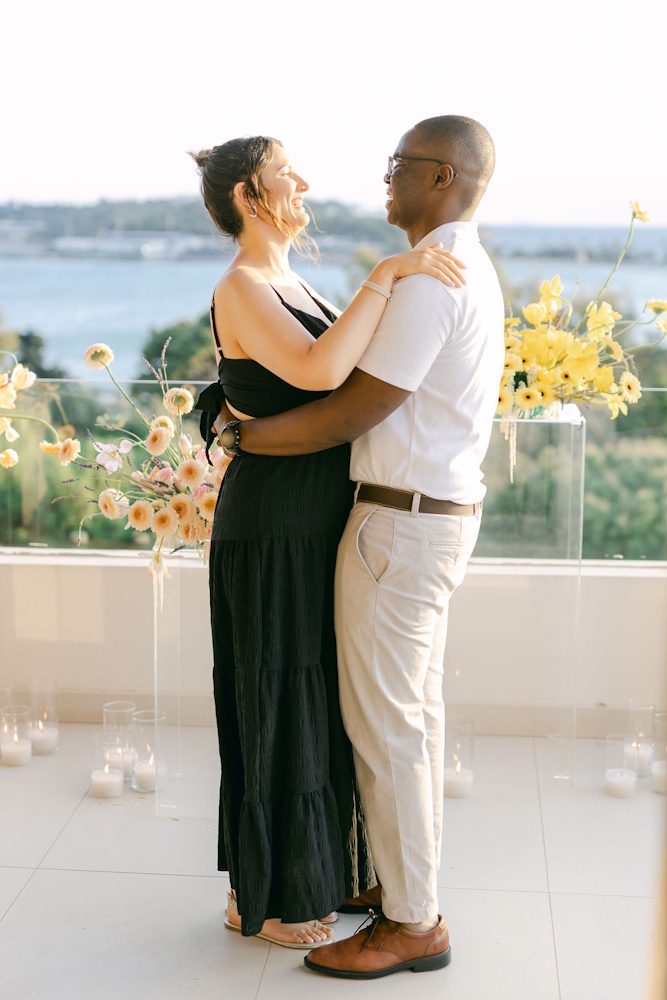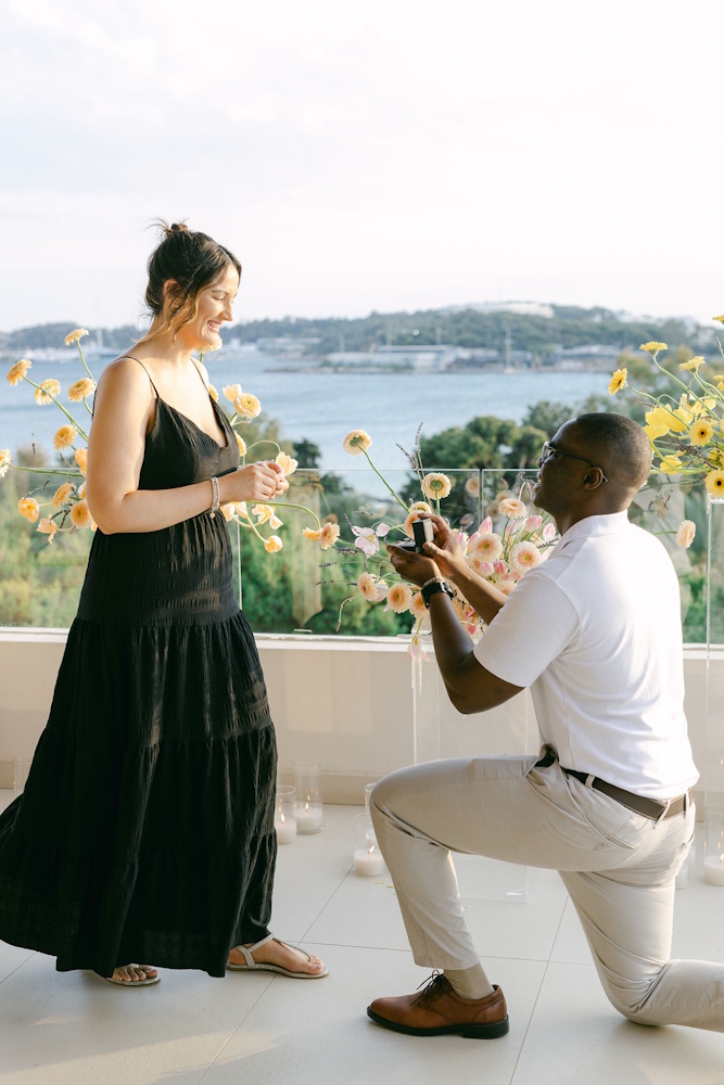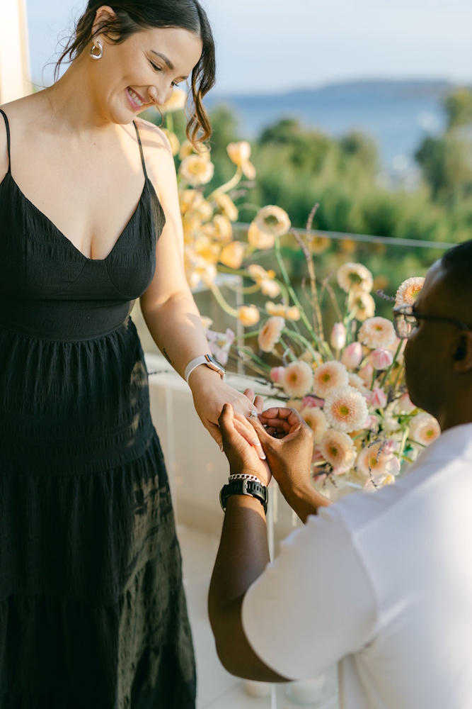 After exploring a few concepts, Emmanuel’s heart was set on a luxury private suite overlooking the glittering coastline, where golden sunlight melts into the sea and lush greenery frames the horizon. It was the perfect canvas for his one-of-a-kind proposal, a moment designed to be as extraordinary as their love story.